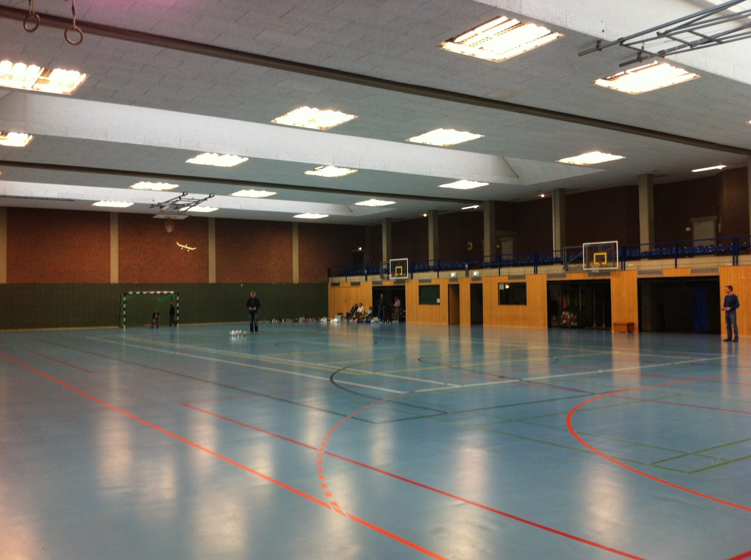 Wir Veranstalten einmal im Jahr einen Indoorwettbewerb beim Hallenfliegen. Dabei müssen die Piloten verschiedenste Disziplinen wie Ballonstechen, Limbofliegen und Geschicklichkeitsaufgaben meistern.